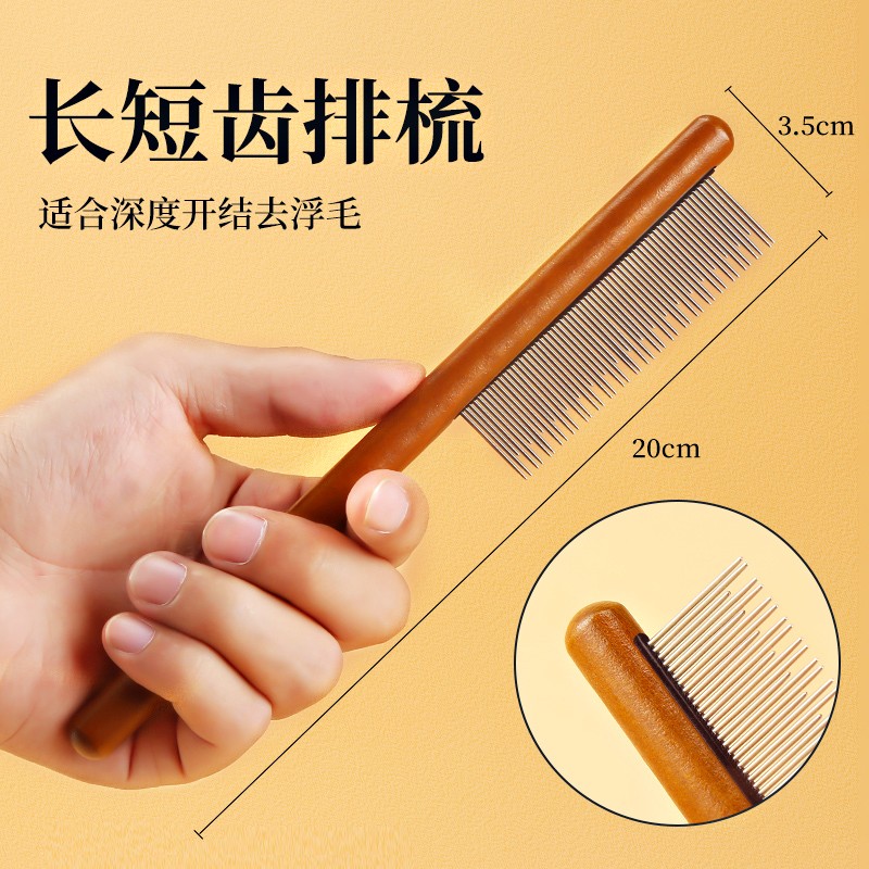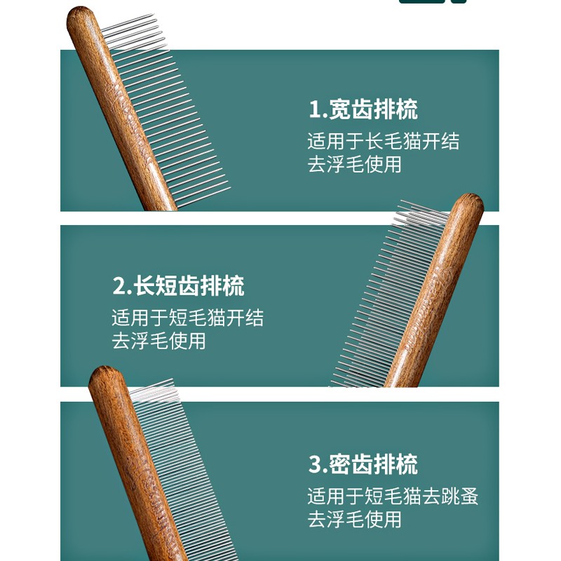 迪普尔 猫梳子猫咪跳蚤梳子刷毛器密梳毛刷猫毛清理器排梳毛神器宠物 长短齿梳【开结去浮毛】