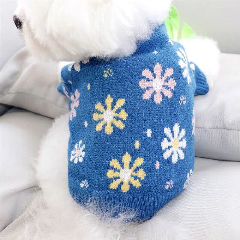 鹿凌青 小狗狗穿的衣服秋冬装宠物泰迪比熊博美贵宾小型犬雪纳瑞狗狗衣服针织毛衣 蓝色小花毛衣 L(建议8-12斤)