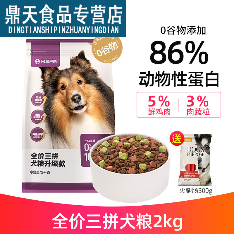 网易严选狗粮 全价三拼犬粮0谷物 三文鱼牛肉鸡肉 柯基柴犬泰迪全价狗粮 【2.0款】2kg