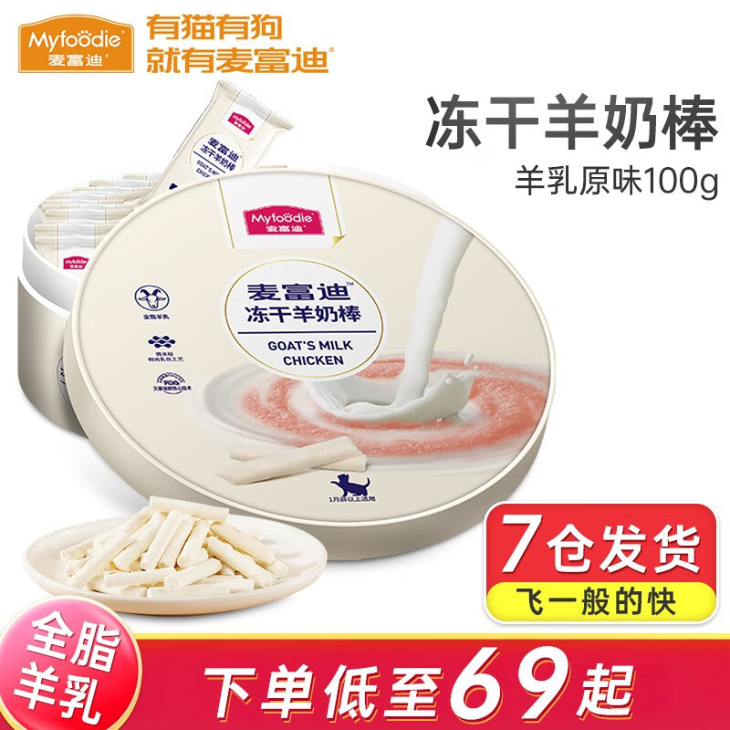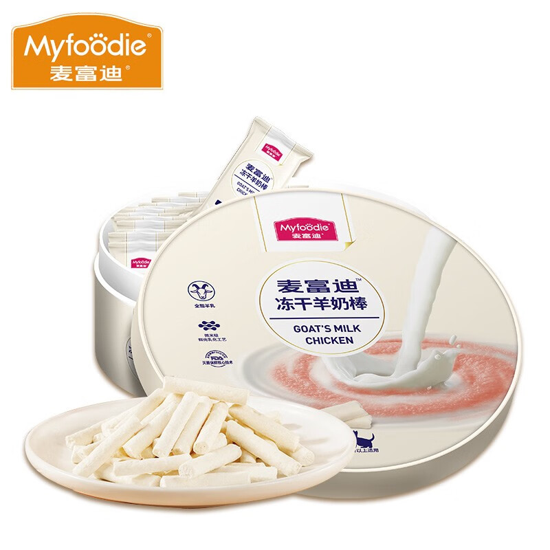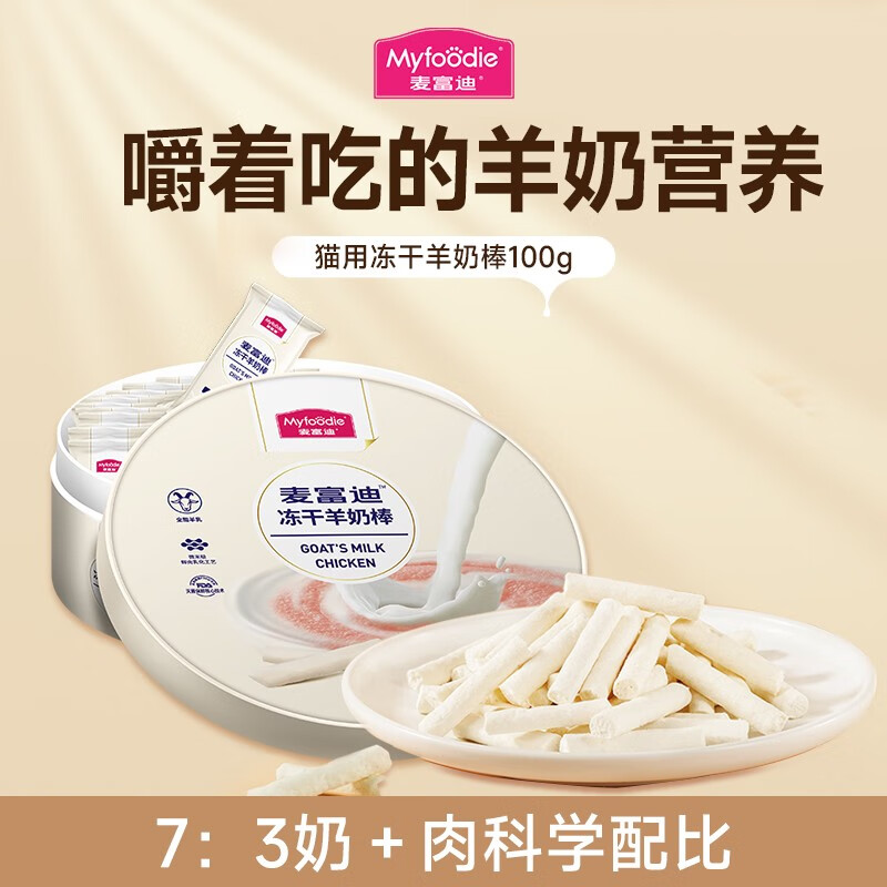 麦富迪(Myfoodie)猫咪零食 冻干羊奶棒1-12月成猫幼猫通用肉奶搭配猫零食 原味100g