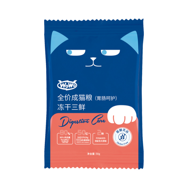 WOWO喔喔猫粮 无谷冻干三鲜全价猫粮 成幼猫主粮增肥美毛去毛球猫干粮英短布偶通用 全价成猫粮250g(50g*5)