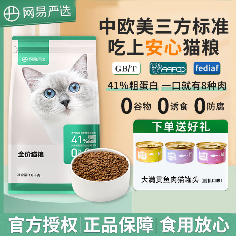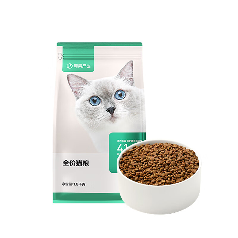 网易严选【官方授权宠爱相伴全阶段全价猫粮猫猫通用型宠物全价猫粮主粮 全价猫粮2.0 1.8KG 3包装加罐头80克3个