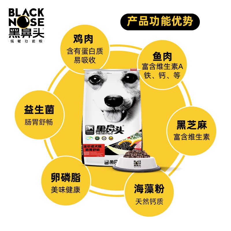 黑鼻头狗粮 狗犬功能型宠物美毛舒畅倍健奶糕天然粮 成犬-肠胃舒畅7.5kg*2