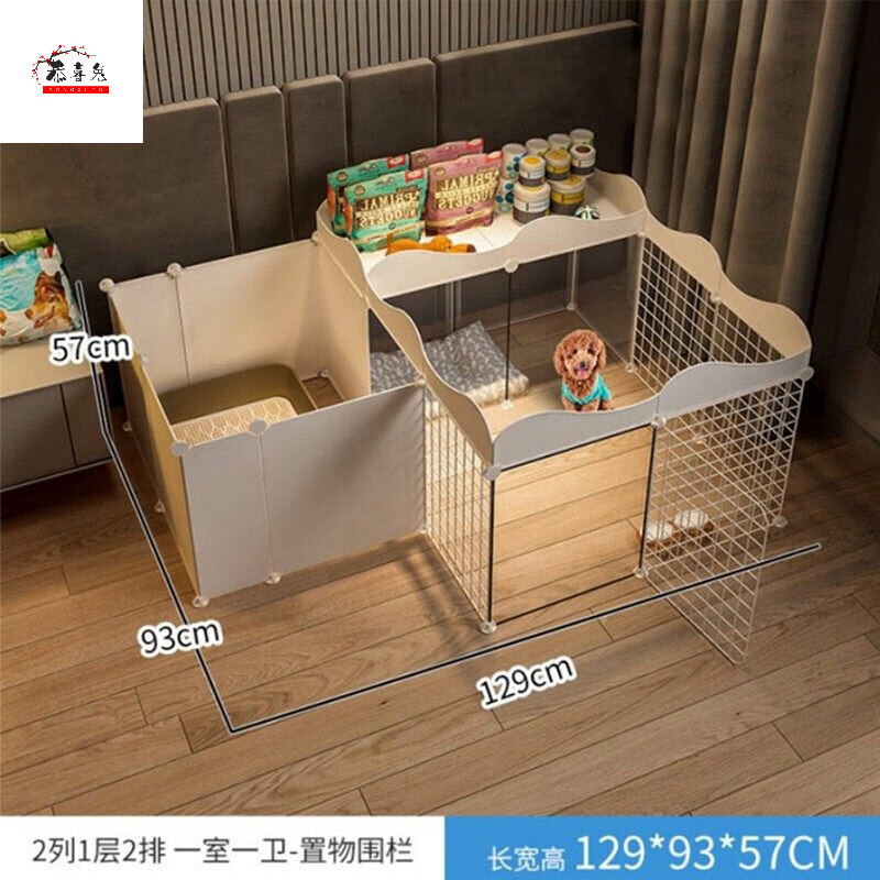 极墨 狗狗围栏宠物小型犬家用博美泰迪室内栅栏护栏狗窝带厕所区狗笼子店长推荐 『129*93*57,25斤内』一室一卫 豪华款【舒适狗窝 加固扣 扎带 免费换新 围栏】