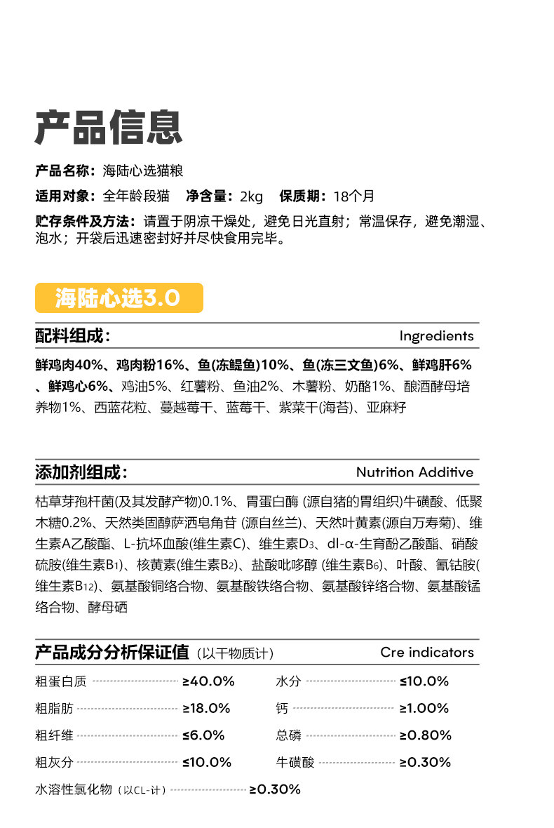 有鱼猫粮 海陆心选3.0全价猫粮2kg