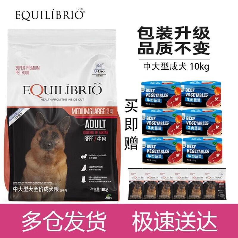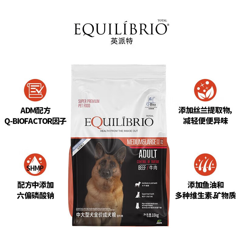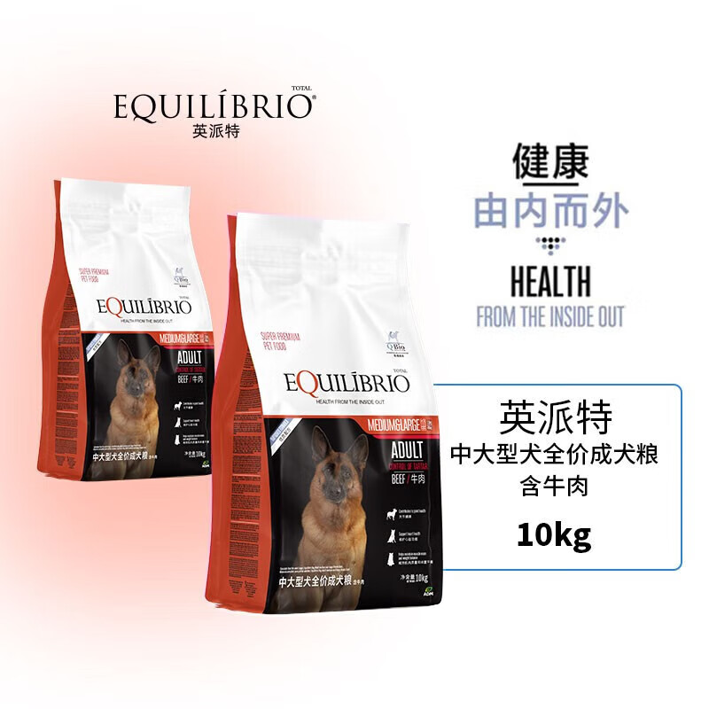 TOTAL EQUILIBRIO巴西淘淘狗粮中大型犬牛肉味鸡肉味英派特全价通用型犬粮 中大型犬 成犬粮10kg(牛肉味)