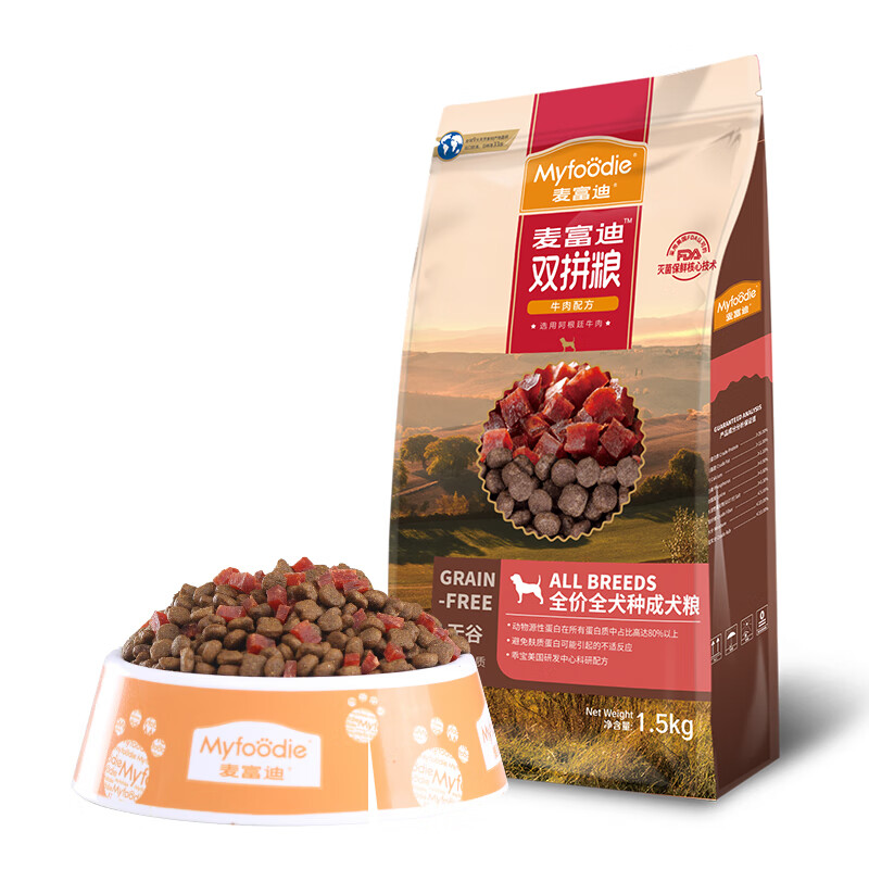 麦富迪狗粮无谷牛肉双拼成犬小中大型泰迪比熊柯基柴犬通用1.5kg 无谷牛肉双拼通用型成犬狗粮 1.5kg