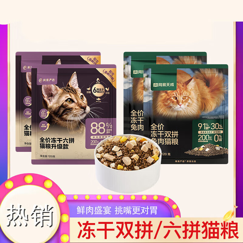 网易严选【罗永浩直播专享】冻干双拼六拼猫粮120g*4袋试吃装猫粮 兔肉双拼猫粮120g*2袋 冻干六拼 480g120g*4袋装