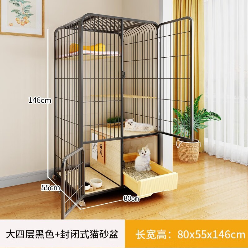 爱咪宠猫笼子超大号家用猫窝别墅带厕所一体适合大猫室内猫舍屋宠物猫笼 大四室封闭猫砂盆【80*55*146】 猫厕款:猫砂盆 猫砂铲 滑轮