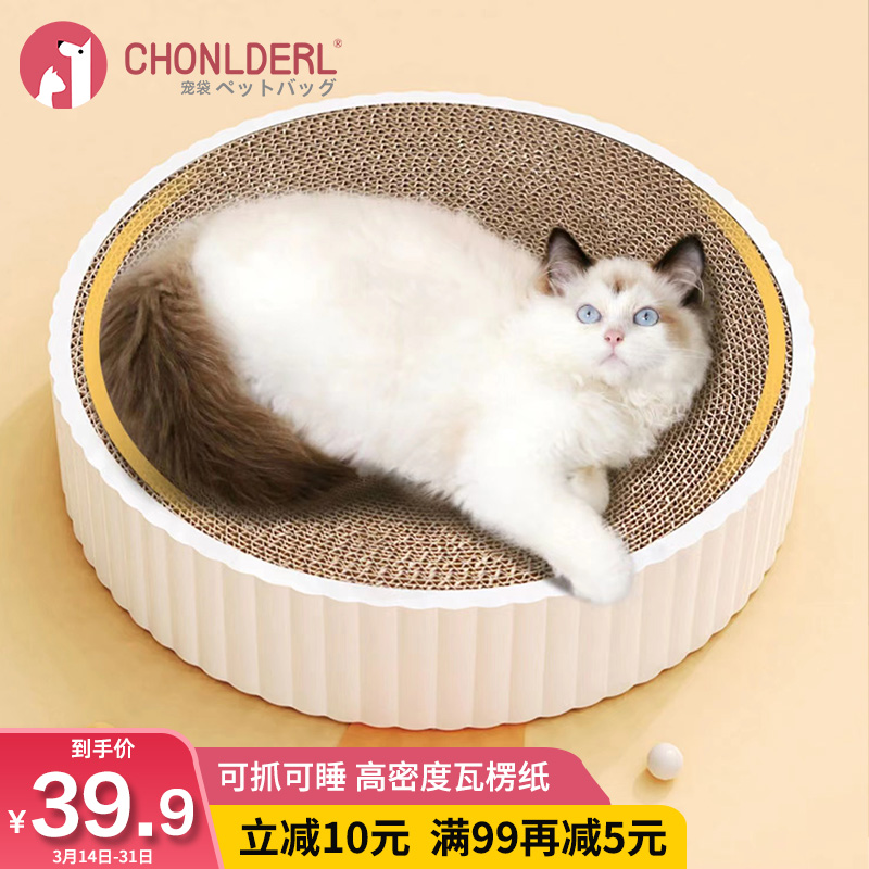 宠袋 猫抓板 猫窝圆形猫爪板耐磨瓦楞纸磨爪器 一体不掉屑猫玩具猫咪用品中号