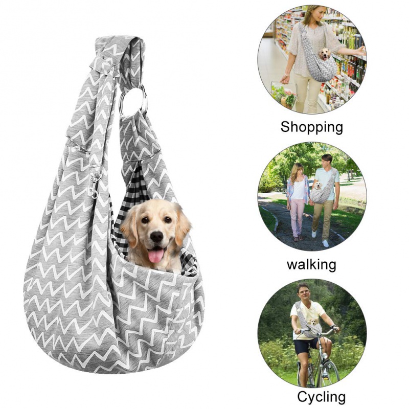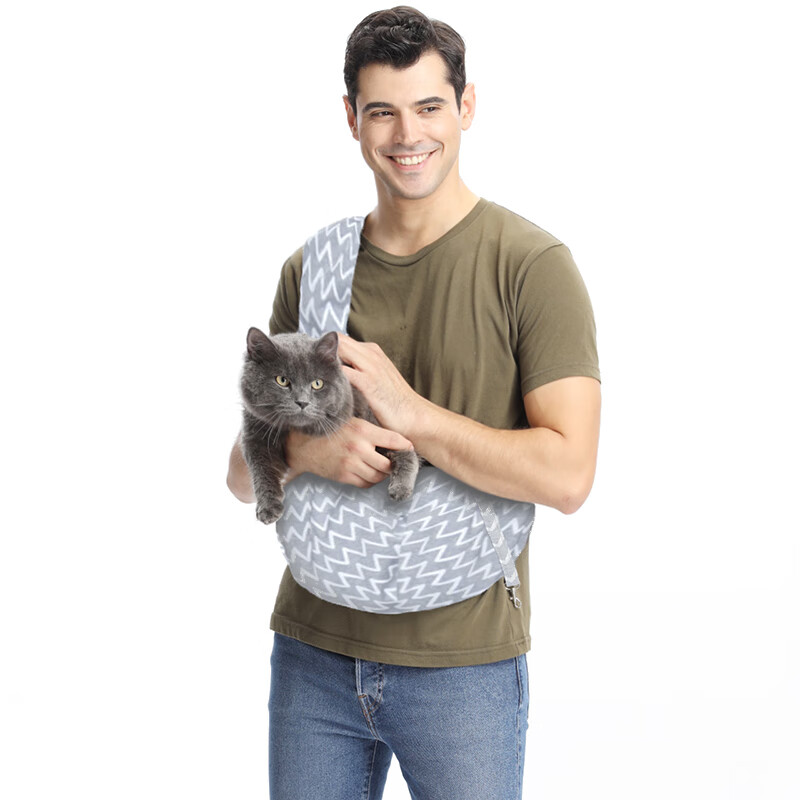 【升级新款】猫包外出胸前背带 宠物袋外出猫包背带胸前斜挎包单肩便携小型狗包夏季透气背袋大号 灰色 波纹 可调节长度 M-中型