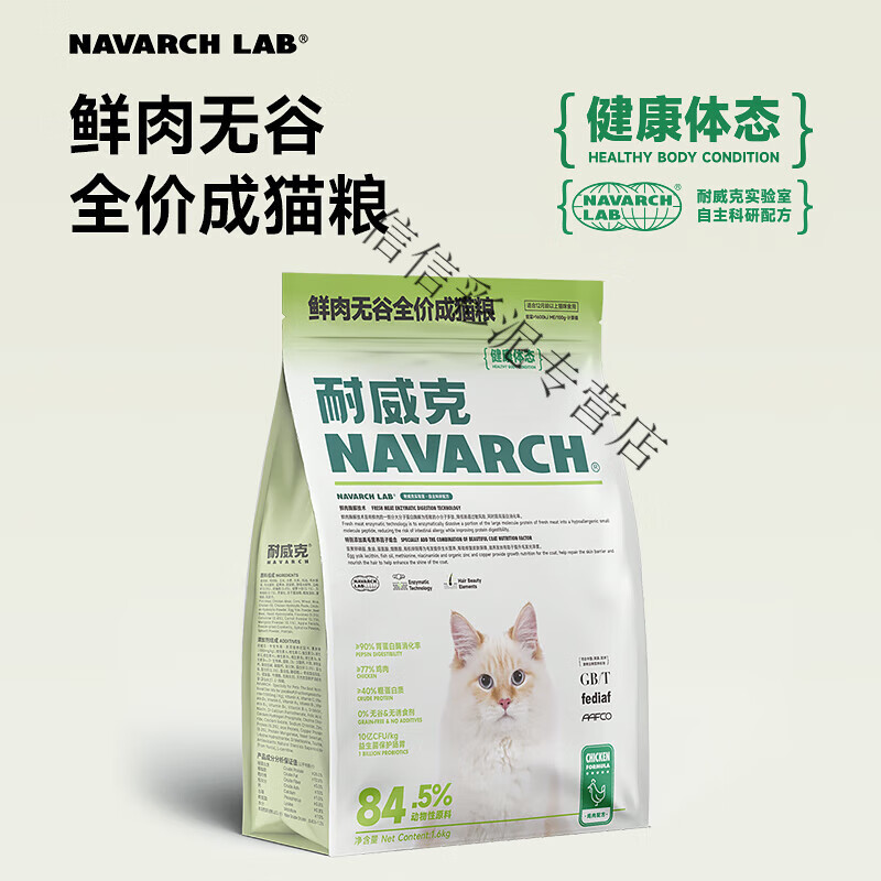耐威克(Navarch)健康体态鲜肉猫粮无谷物成猫幼猫主粮通用型全期全价鸡肉味 成猫粮(拒绝肥胖与疾病) 1.6kg单包装