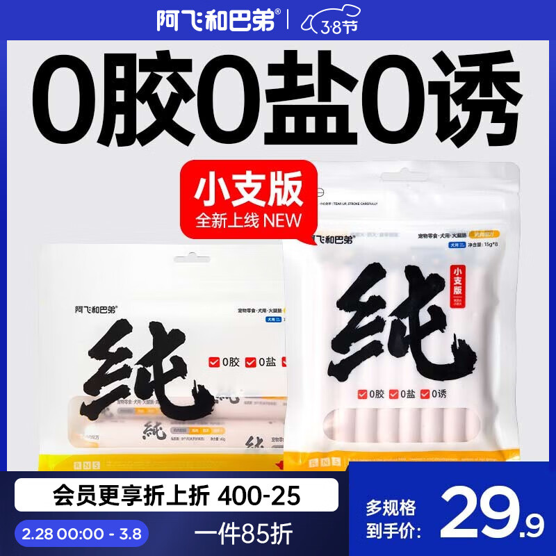 阿飞和巴弟狗零食纯肠火腿肠香肠大中小型犬补钙无盐训练奖励 大型犬 三文鱼口味 (360g/包) 1包