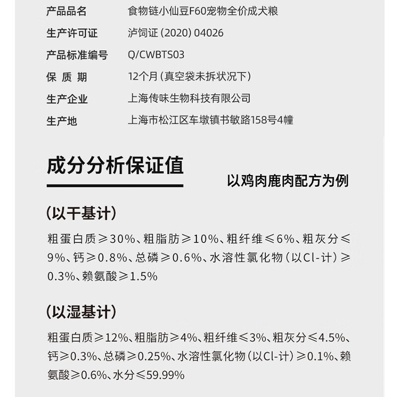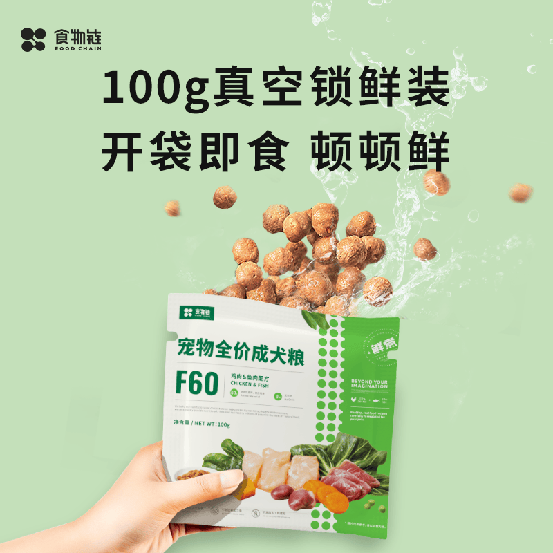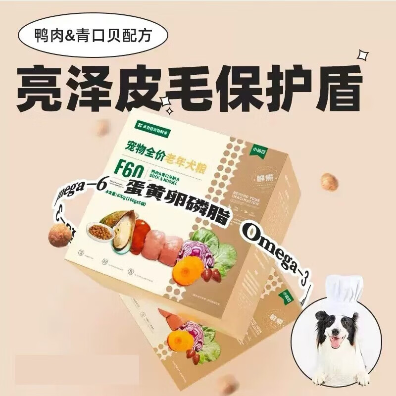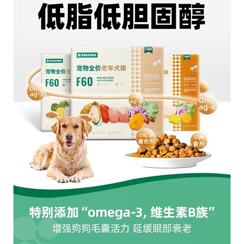 食物链F60小仙豆狗粮无谷鲜煮全价幼犬粮成犬粮老年犬粮 老年犬-鸭肉青口贝3kg