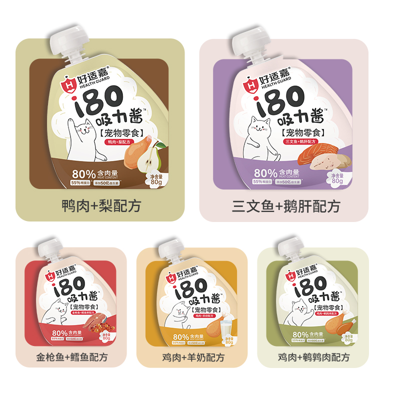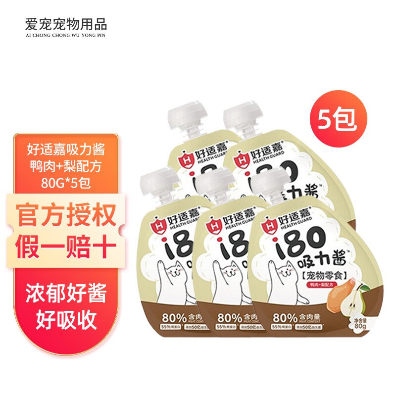 好适嘉湿粮酱包i80高蛋白补水吸力酱80g宠物成幼猫妙鲜包营养奖励猫零食 鸭肉梨口味80g 5包