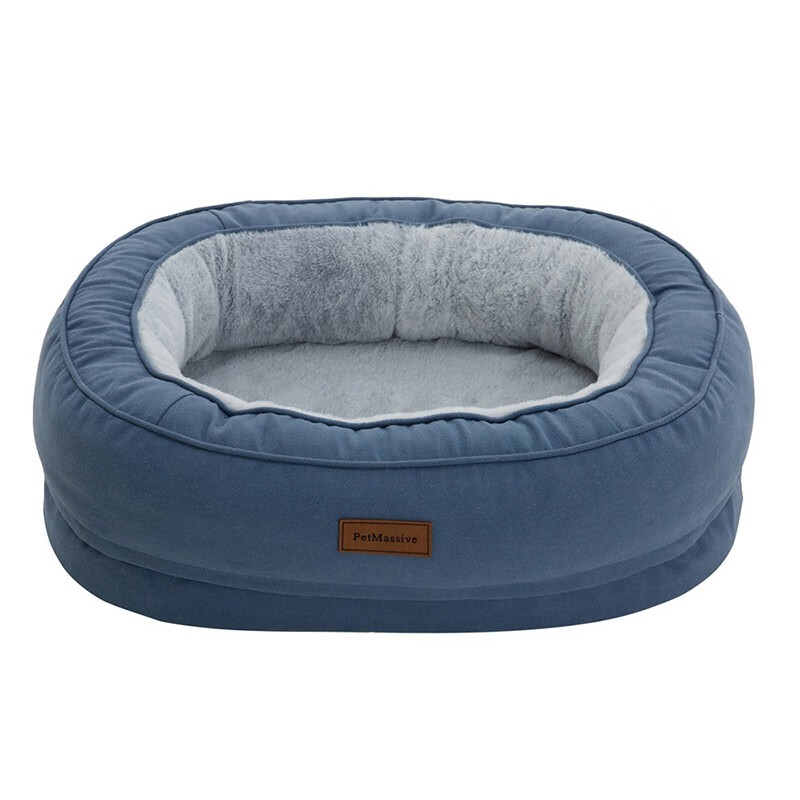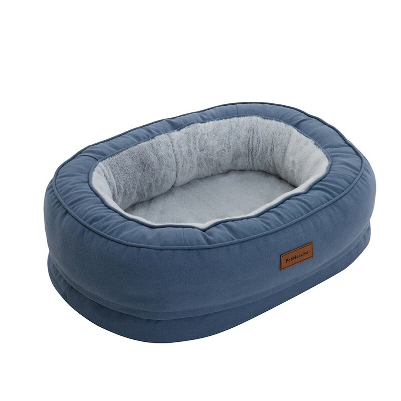 PetMassive狗窝四季通用可拆洗机洗宠物猫窝狗垫子狗窝室外柯基泰迪小大型犬 椭圆窝(保暖加绒)蓝色 XL:120*80*25.5