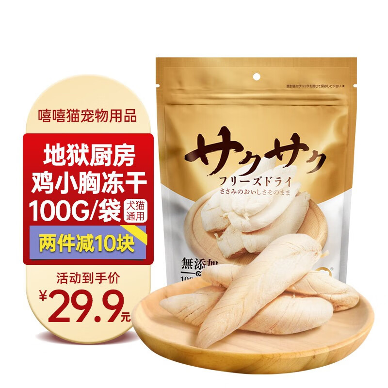 地狱厨房鸡小胸冻干100g 无添加宠物猫狗通用 营养蛋白质零 鸡胸肉冻干*1袋 鸡小胸冻干 犬猫通用 100g