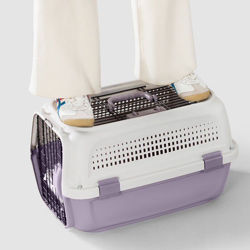 殊福傢猫咪航空箱宠物托运外出便携手提式猫笼子猫包狗狗车载运输箱用品 【托运款】香芋紫色-送挂碗 M-适合10斤内猫犬.