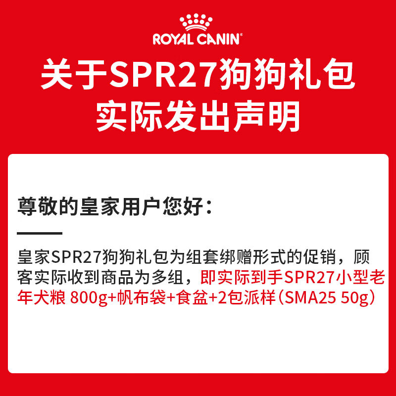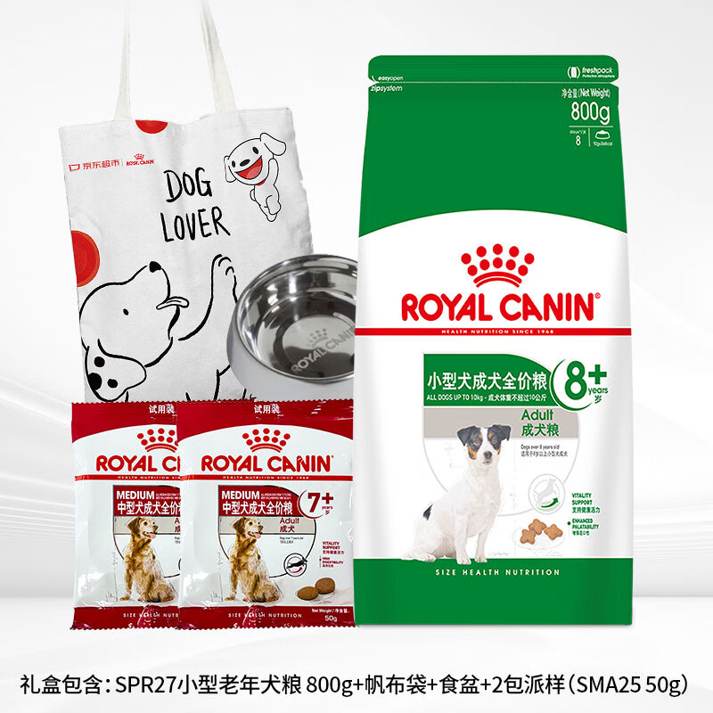 皇家SPR27 老年犬礼包(实发0.8kg狗粮 帆布袋 食盆 试吃装 含附件)