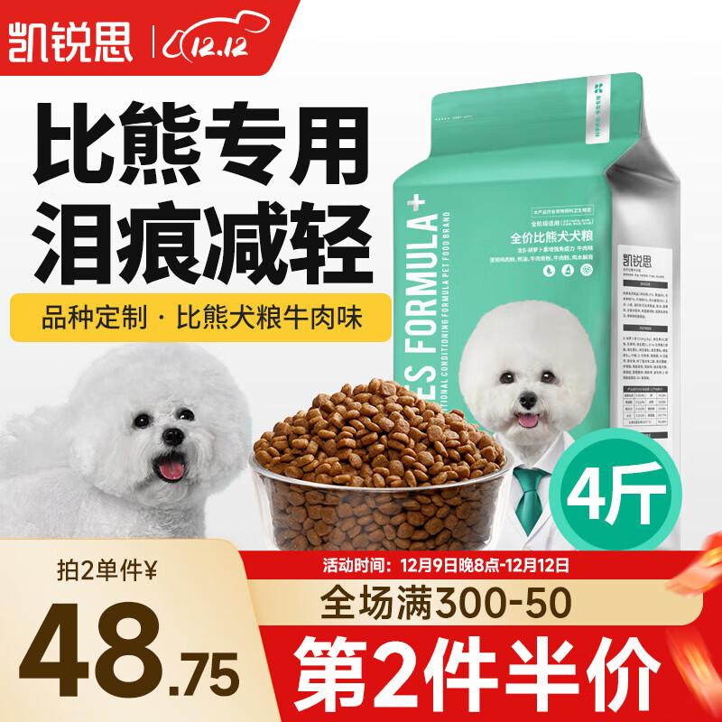 凯锐思比熊狗粮幼犬成犬专用白色美毛改善泪痕比熊犬专用粮奶糕 【牛肉味4斤】拍2单件丨51.75