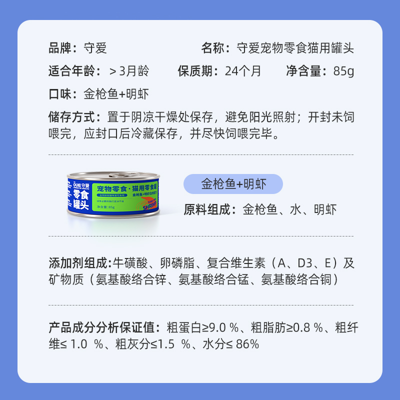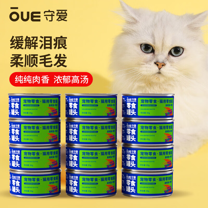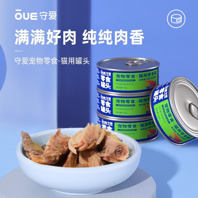 守爱纯臻浓汤经典大块肉金枪鱼明虾口味宠物猫粮猫零食白肉罐头85g*12罐/箱