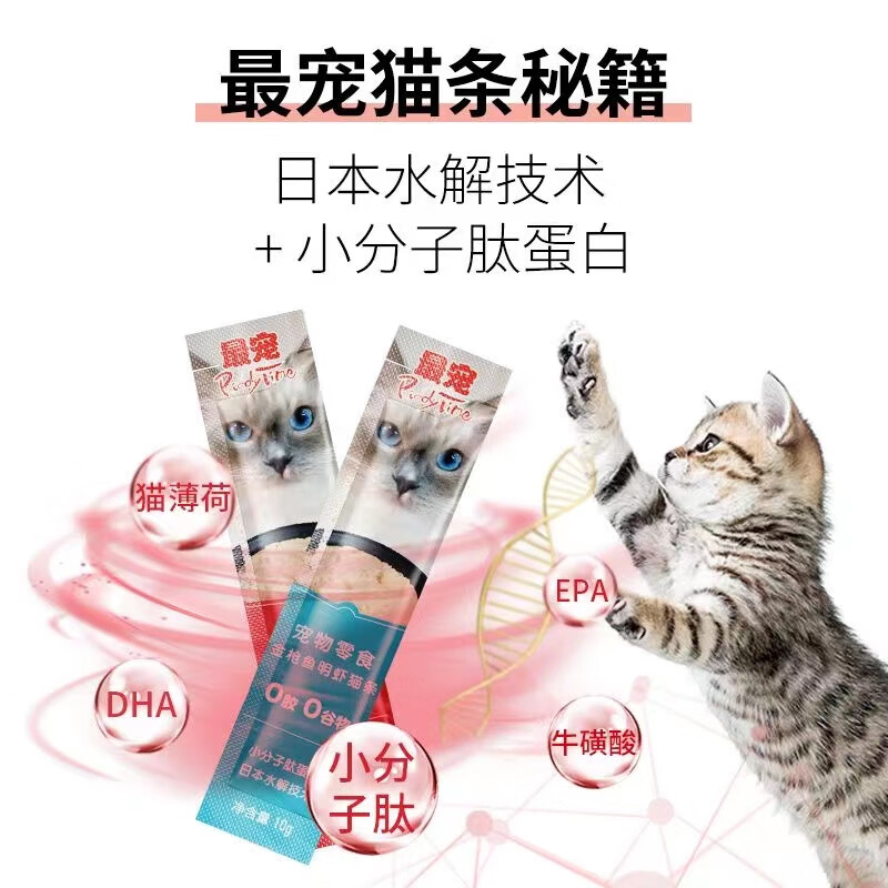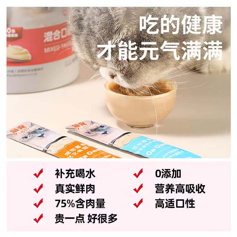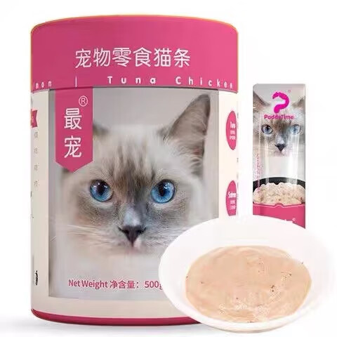 最宠猫条毛条猫条paddytime猫零食成幼猫咪补水高蛋白湿粮补钙10g*50 混合口味*50只/桶 1罐