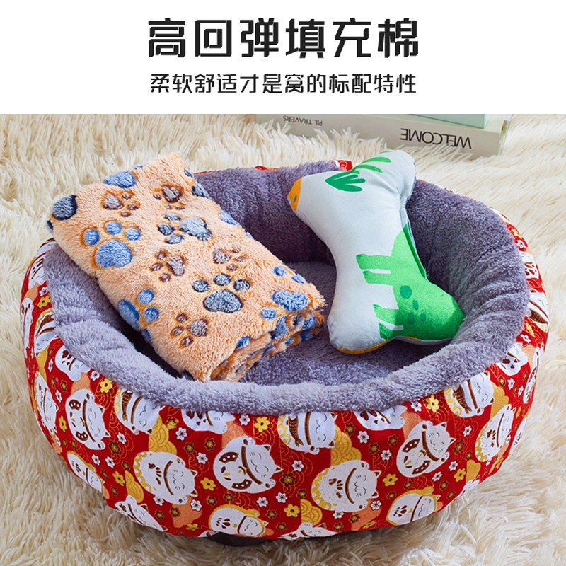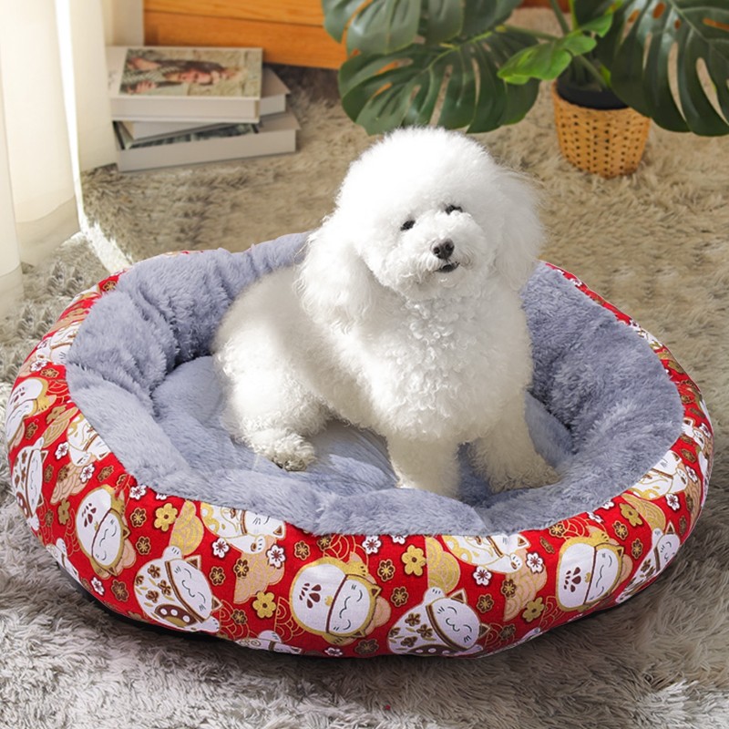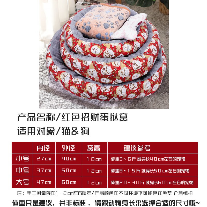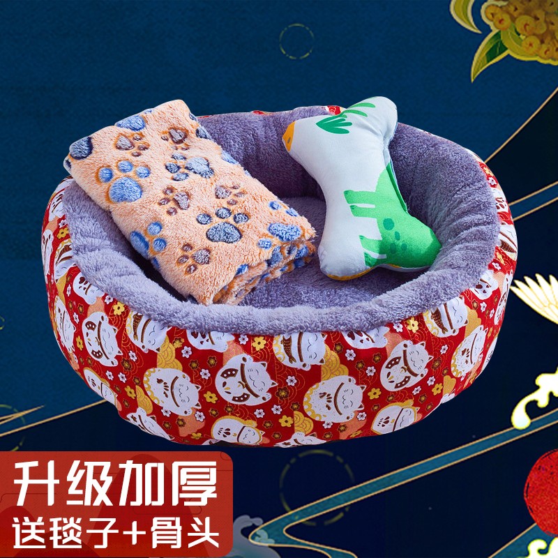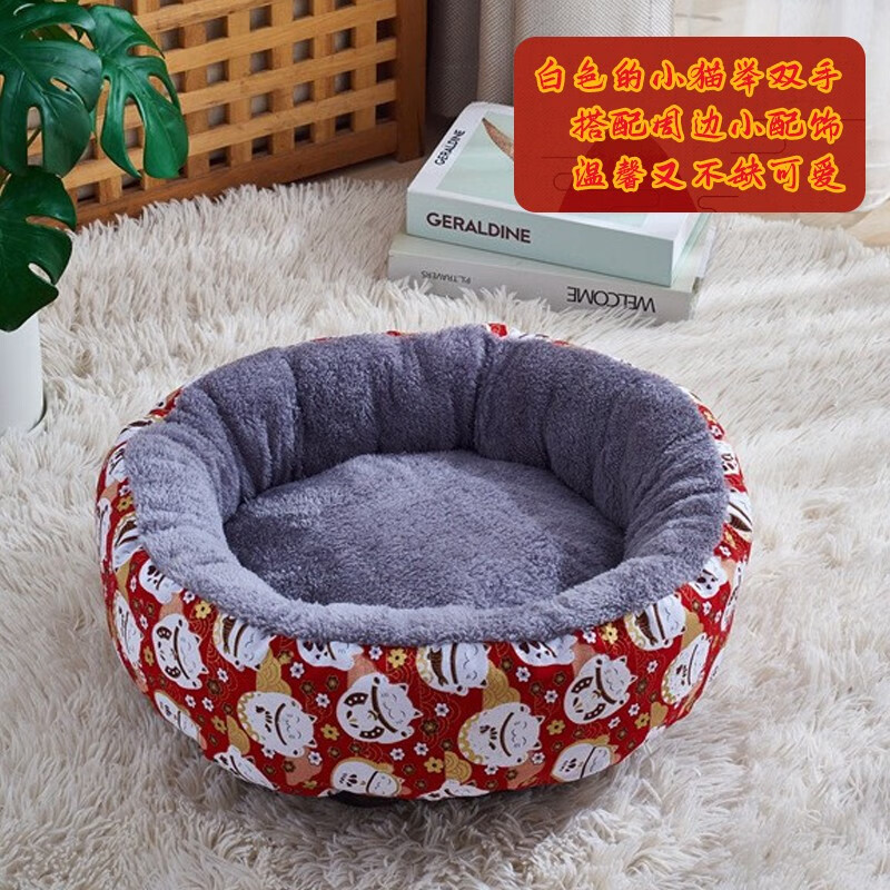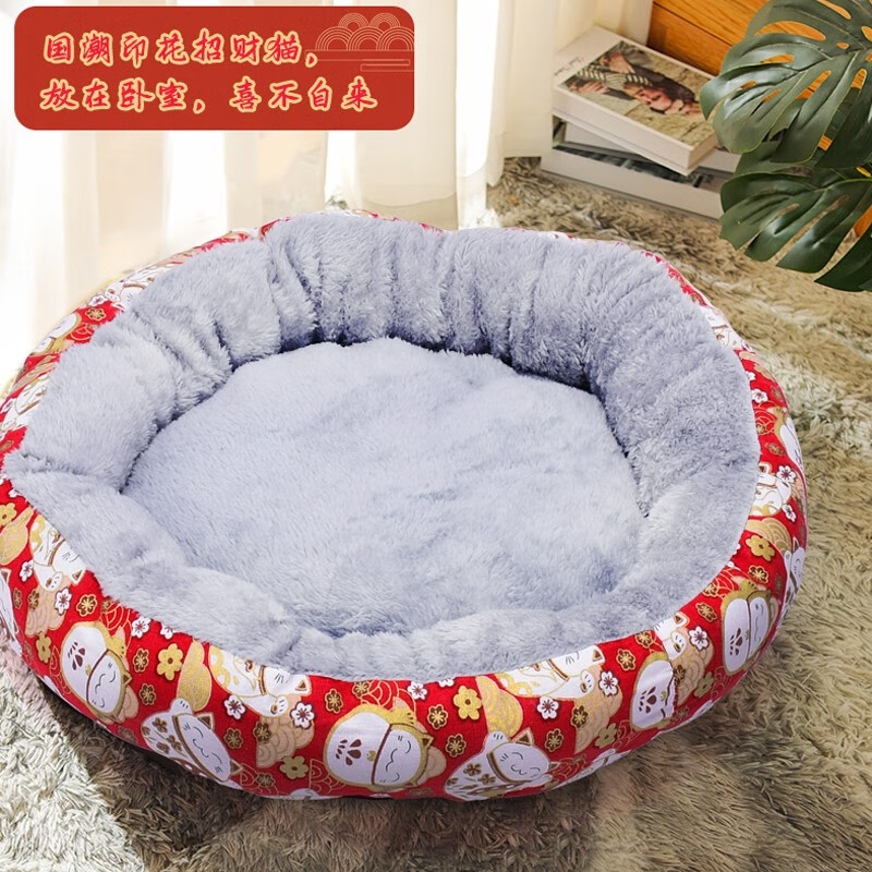 茨格曼 国风猫窝狗窝冬季保暖小中型犬泰迪比熊柯基法斗小狗狗窝垫宠物窝国潮 国潮招财猫-S号 直径40cm
