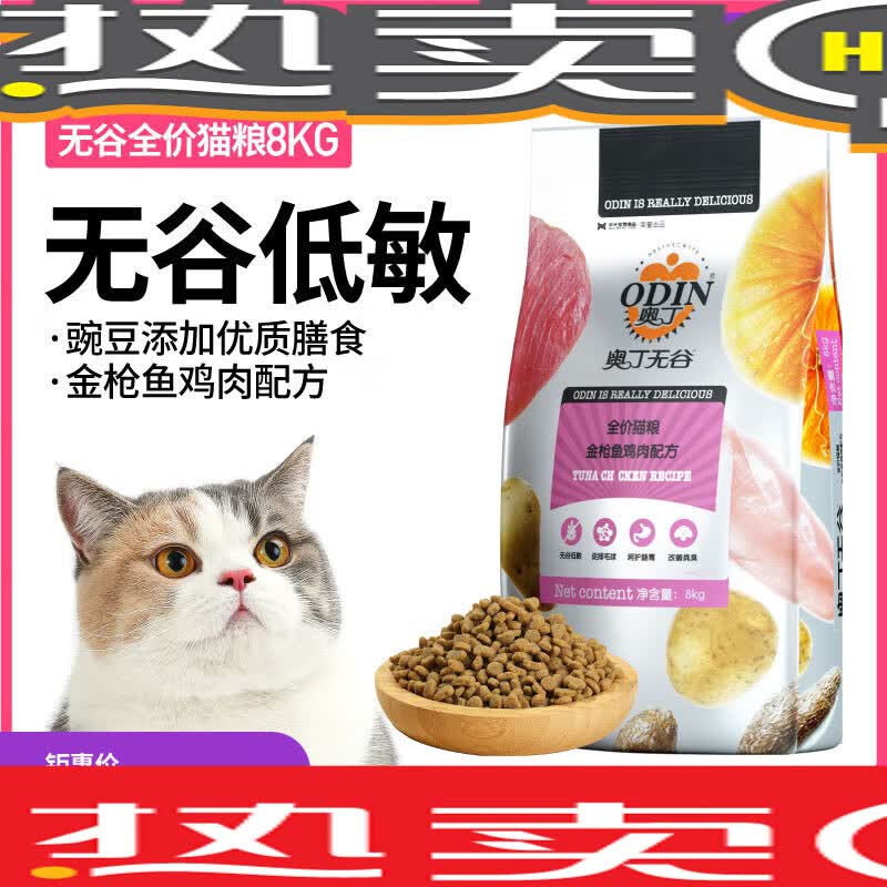 奥丁无谷猫粮全阶段发腮幼猫成猫天然鲜肉全价室内纯营养8k.g 金枪鸡肉配方 8k.g