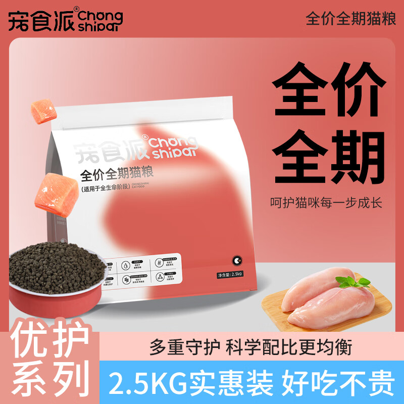 宠食派幼猫粮高蛋白发腮全价猫粮增肥宠物主粮幼猫成猫全价粮猫咪布偶 优护系列猫粮2.5kg
