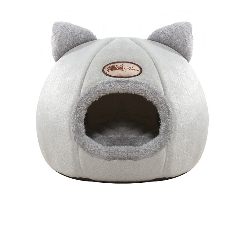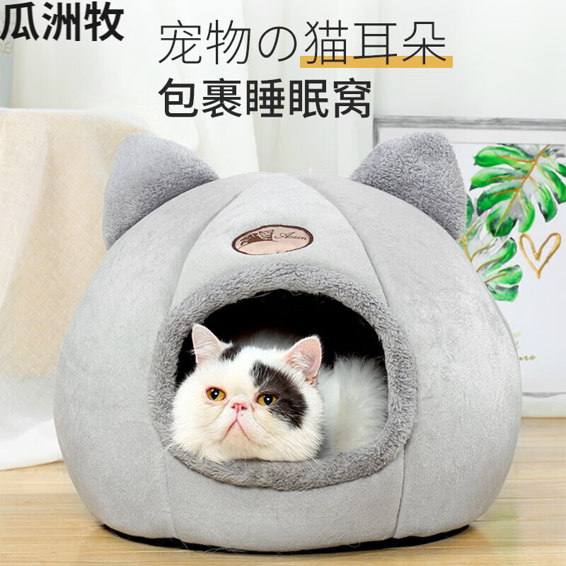 瓜洲牧猫窝四季通用猫咪房子别墅冬季保暖封闭式床网红拆洗狗窝宠物用品 猫耳猫窝灰色 M-中型适合7斤以内宠物
