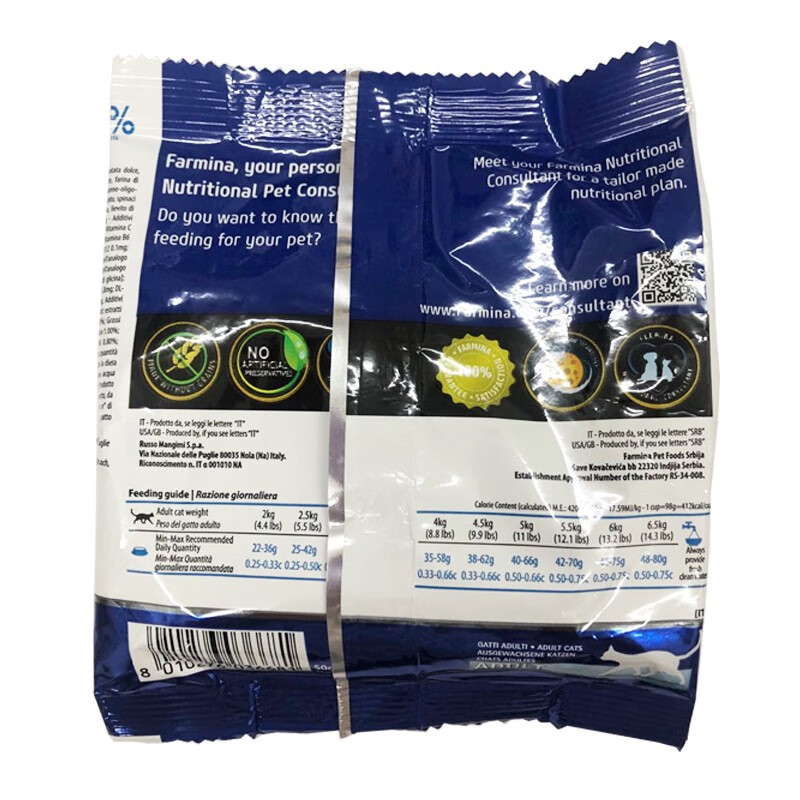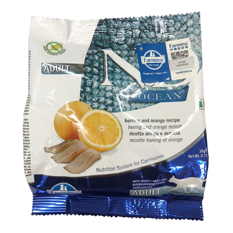 法米娜(farmina)猫粮原装意大利进口成猫粮无谷超高蛋白发米娜 【成猫】鲱鱼甜橙试吃装50g