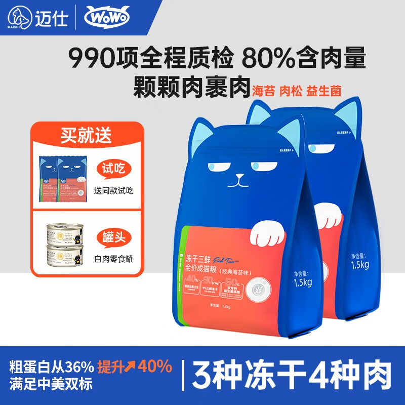WOWO喔喔猫粮无谷冻干三鲜猫粮全价成猫粮老猫粮专用英短美短布偶营养 升级款丨3kg/6斤
