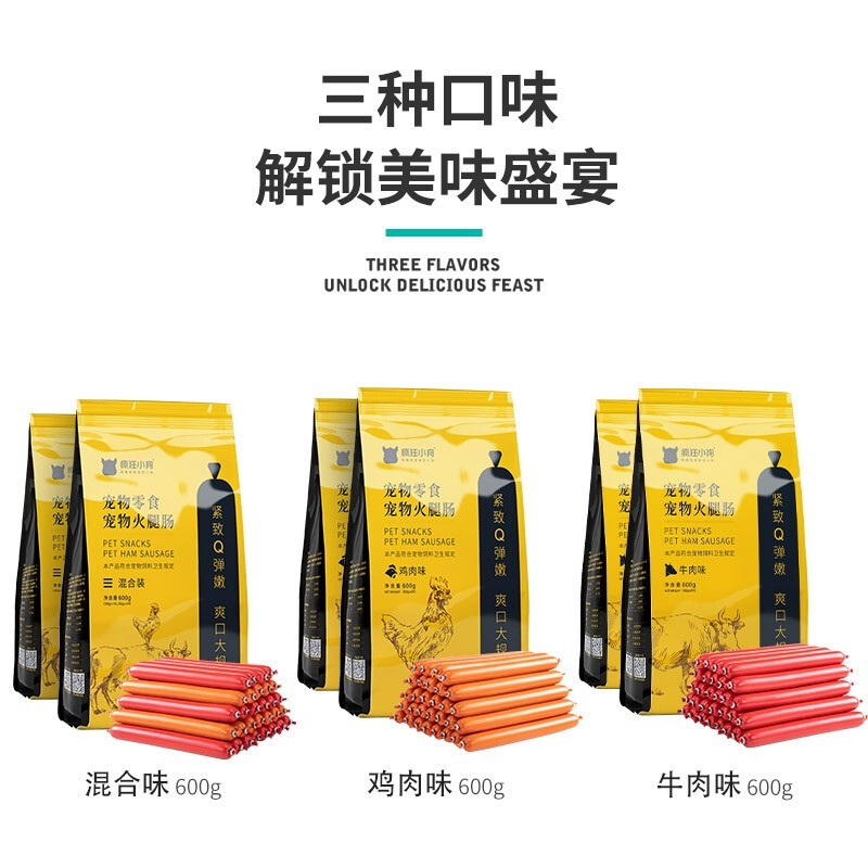 疯狂小狗 狗零食狗狗火腿肠泰迪宠物食品幼犬成犬猫咪训练奖励 混合口味600g【大规格1根顶2根】