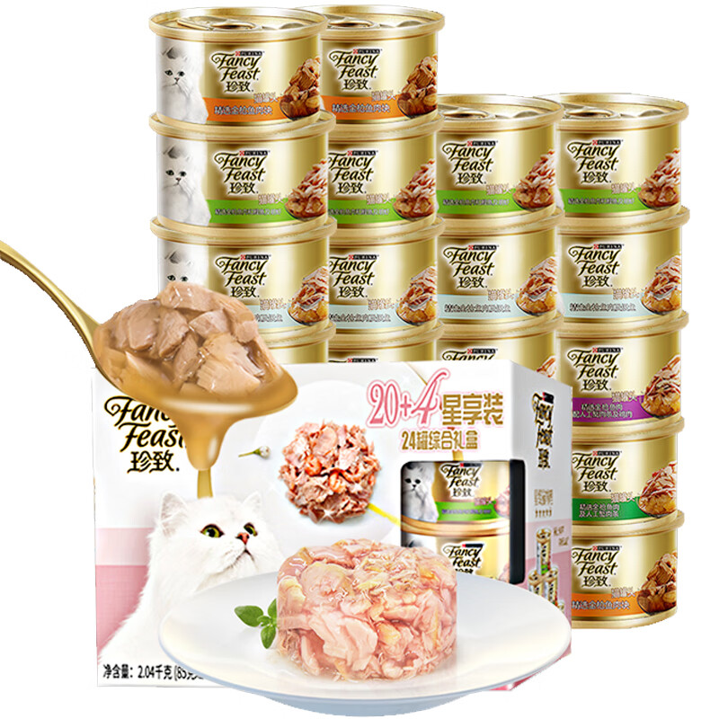 珍致白肉猫罐头24罐整箱猫咪零食幼猫成猫营养孕猫零食湿粮罐 【混合口味】85g*24罐(礼盒装) 85g