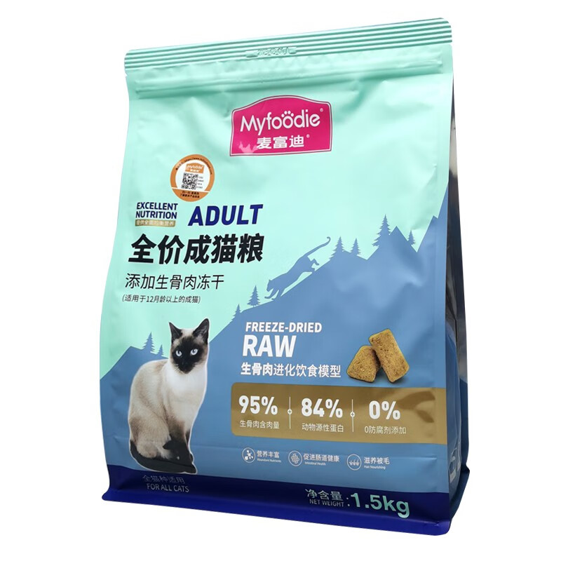 麦富迪生骨肉冻干猫粮幼猫成猫全价猫咪主粮 成猫粮1.5kg