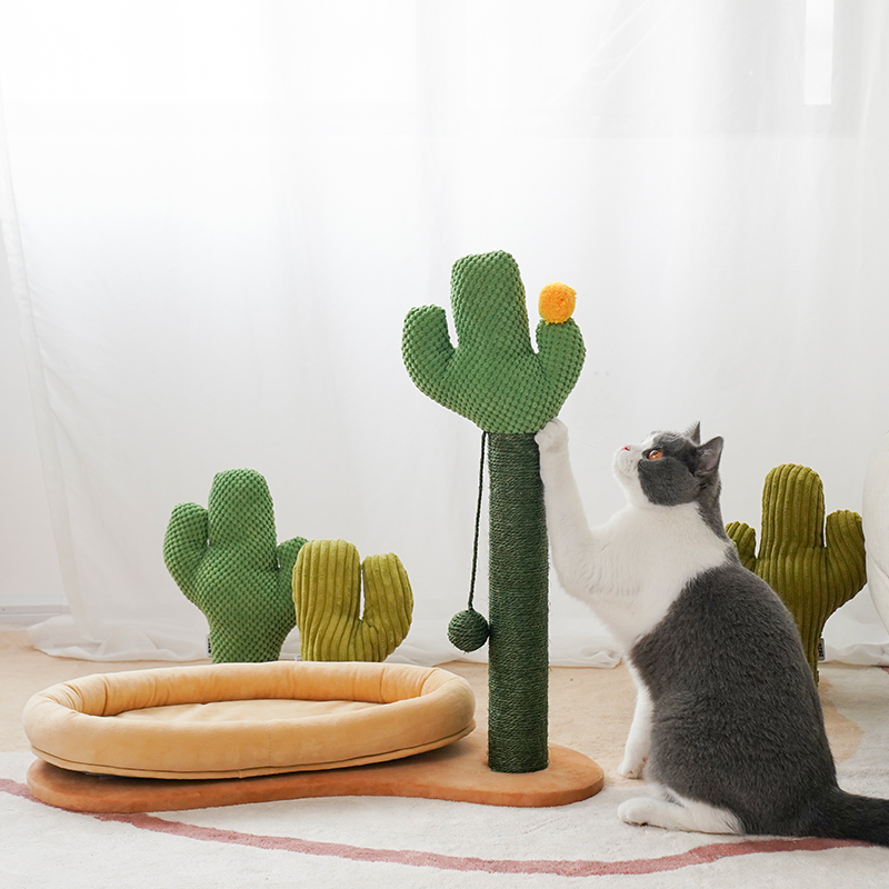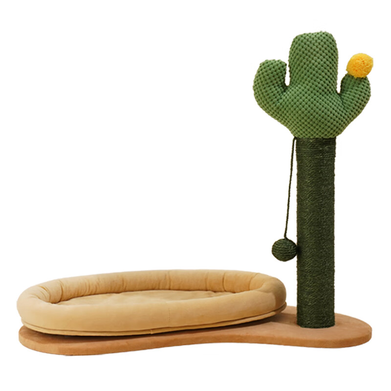 zeze猫抓板立式椰树猫抓柱耐磨猫爪板不掉屑猫玩具 仙人掌猫抓柱带米色窝(60*32*61cm)