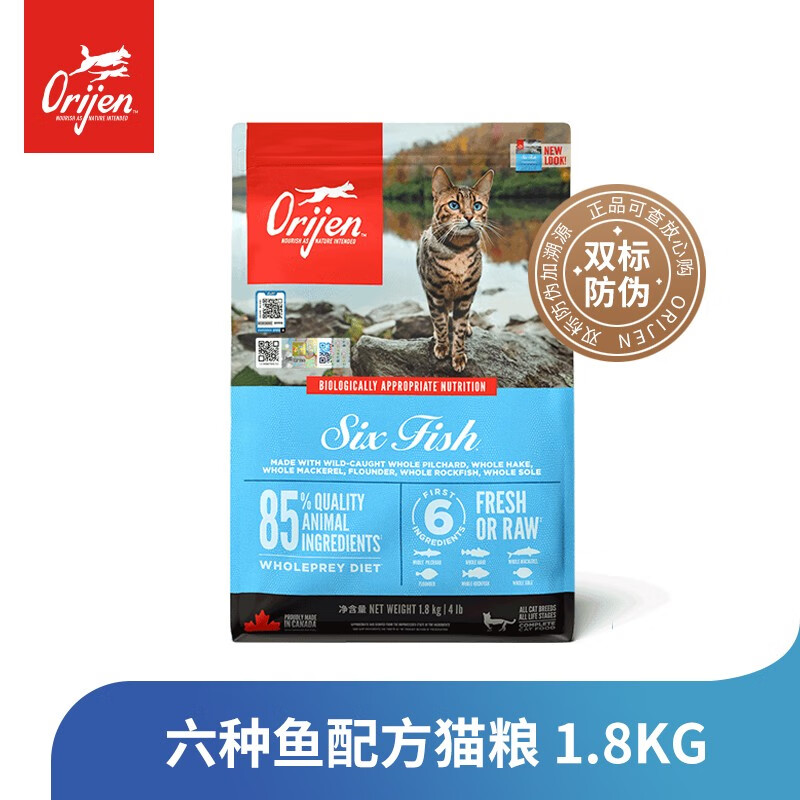 原始猎食渴望(ORIJEN)六种鱼全猫粮原装进口双标鱼肉无谷全期猫主粮营养猫粮宠物食品 1.8kg【效期24.1.1】