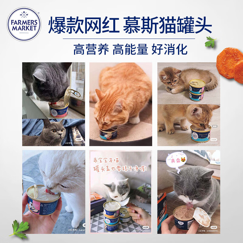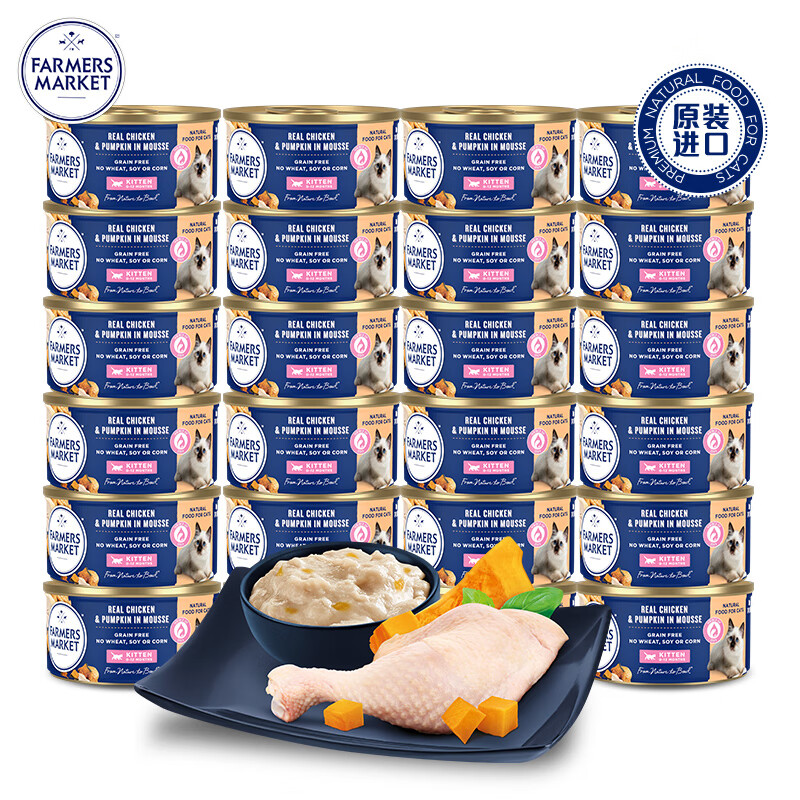 原装进口Farmers Market蓝宝食猫零食罐头幼猫慕斯奶糕鸡肉南瓜配方80g*24罐整箱装