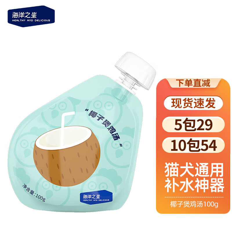 海洋之星 猫咪狗狗零食湿粮汤包 混合口味零食补水胶原汤包100g 椰子煲鸡汤100g