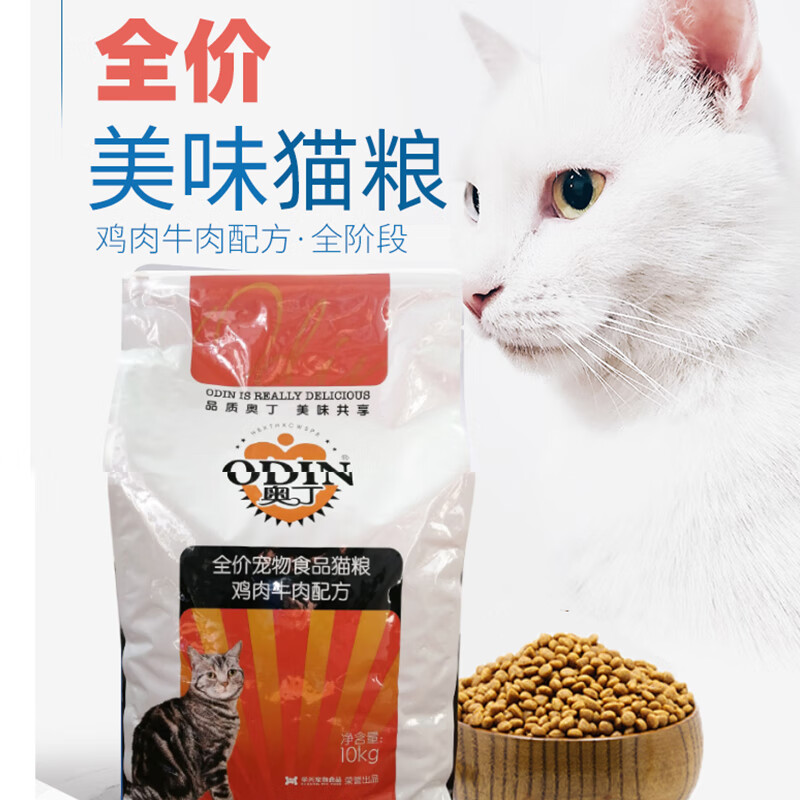 奥丁猫粮鸡肉牛肉味英短蓝猫美短幼猫成猫增肥发腮去毛球大包10kg20斤 全期猫粮