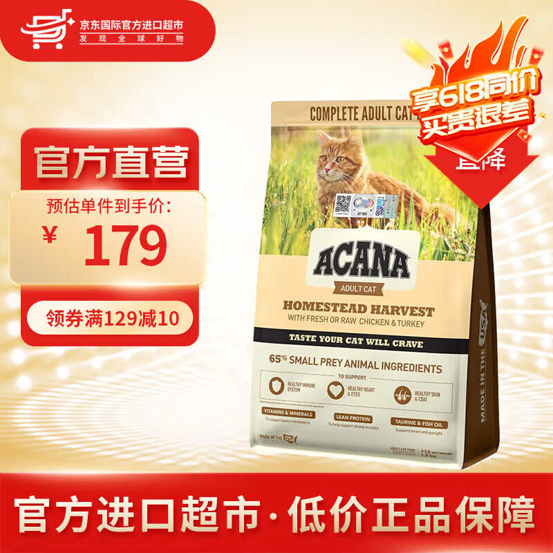 爱肯拿(ACANA)进口猫粮丰收家园成猫鸡肉猫粮美国原装进口1.8kg 鸡肉味 MOA