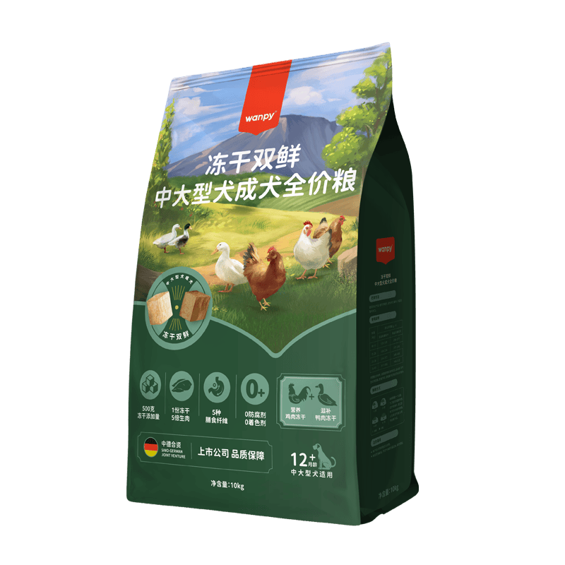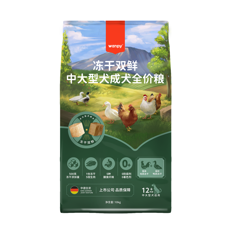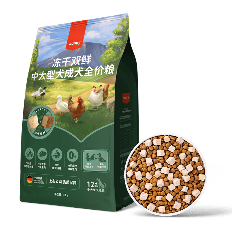 顽皮wanpy犬粮双鲜全价粮两种冻干均衡膳食 qd中大型犬成犬添加冻干鸡肉鸭肉10kg