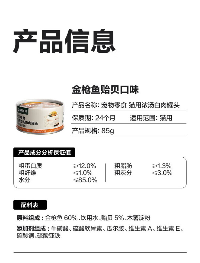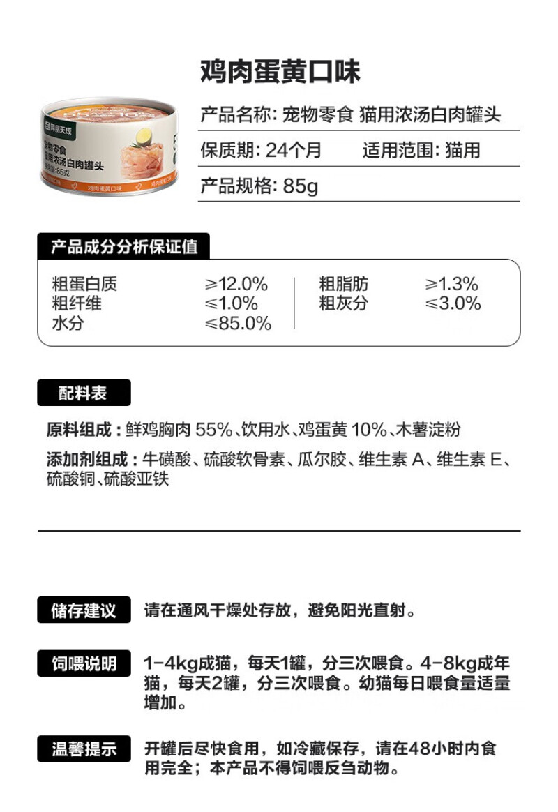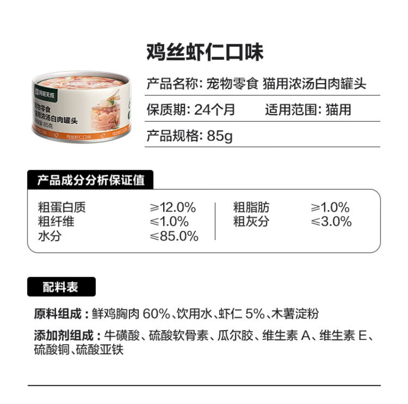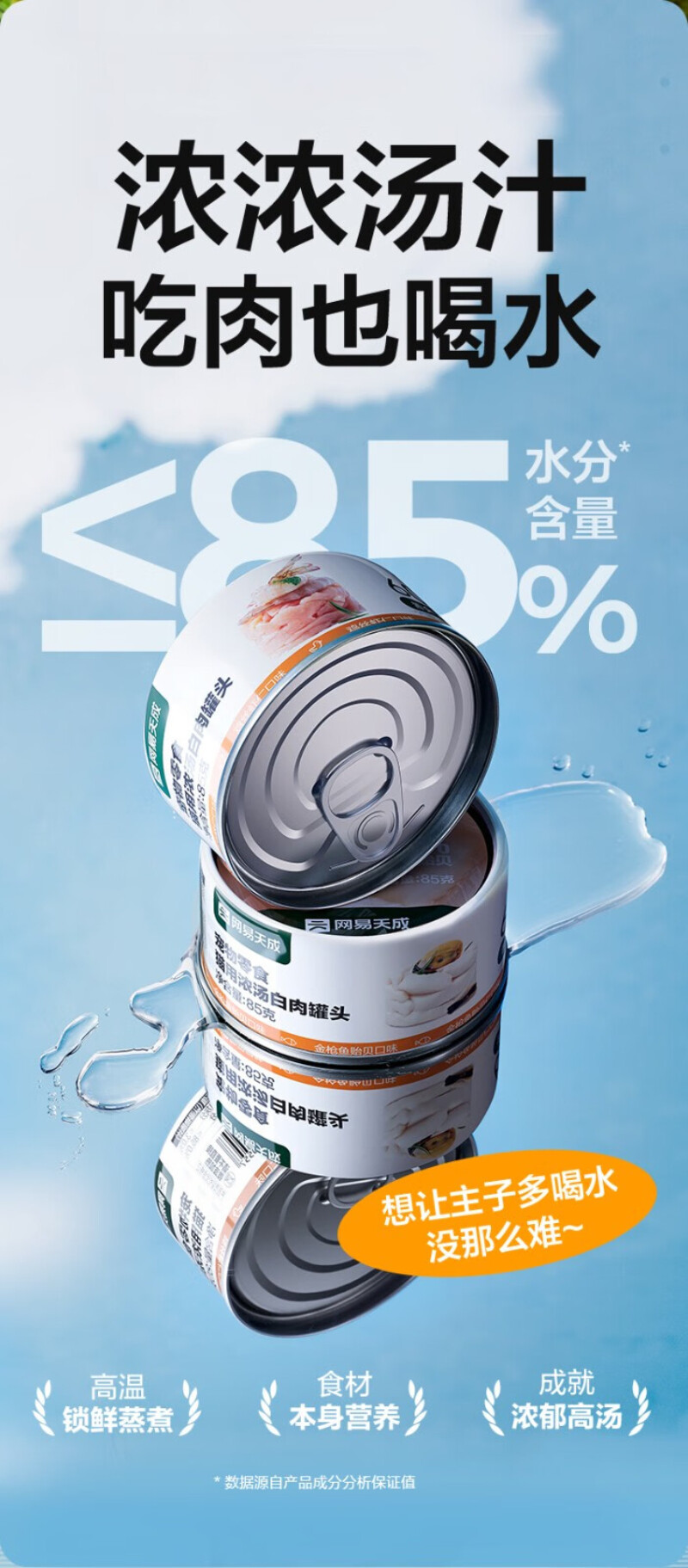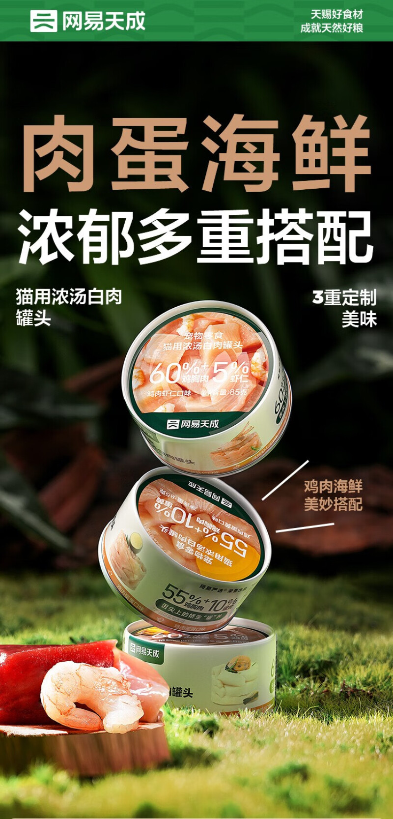 网易天成猫罐头 宠物零食猫用浓汤白肉罐头85/罐