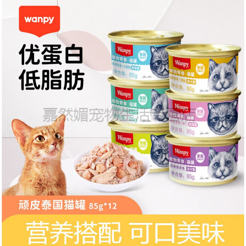 顽皮白肉猫罐头猫零食猫咪湿粮非主食妙鲜封包85g*12罐成猫 混合口味(随机发货) 12罐
