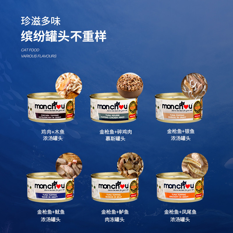 慕安士泰国进口主食猫罐头金枪鱼猫咪零食成幼猫增肥营养70g6罐装