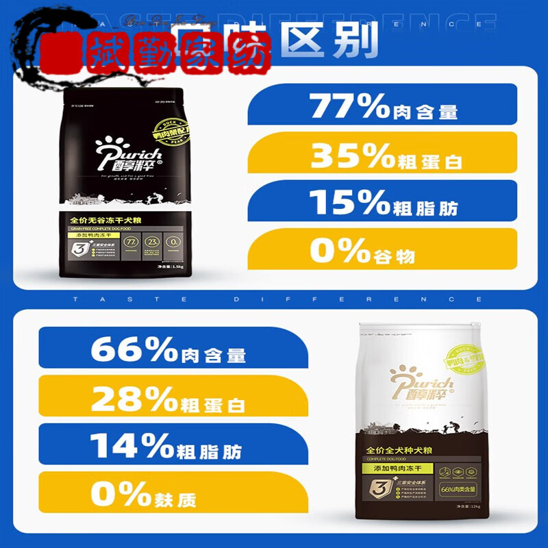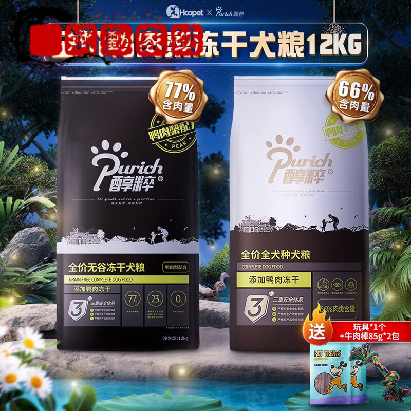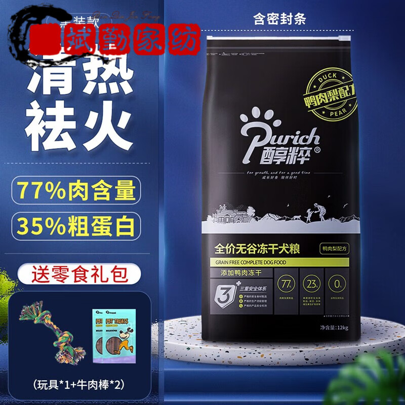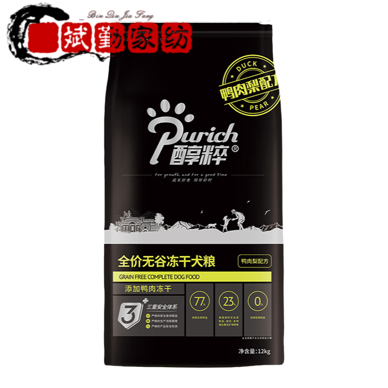 醇粹(Purich)黑色标冻干通用型狗粮鸭肉梨12kg0谷物金标纯粹泰迪全犬干粮 12k 【黑装款】鸭肉梨冻干狗粮【77%