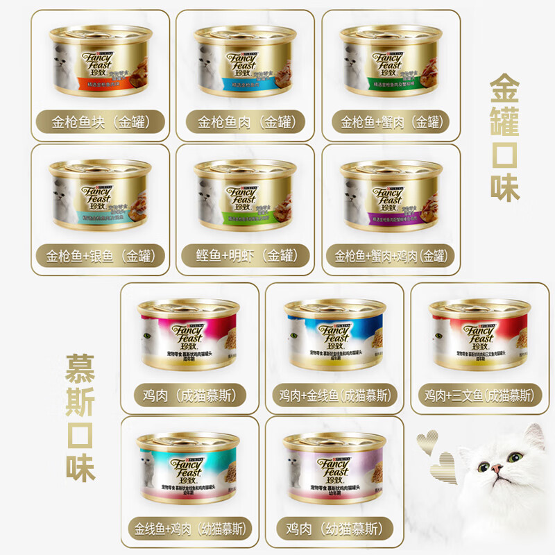 珍致猫罐头增肥营养浓汤罐白肉成猫幼猫咪零食湿粮24罐 【金罐85克12罐】混搭 0g 规格自选