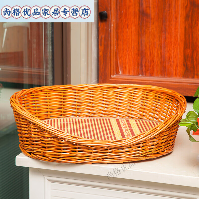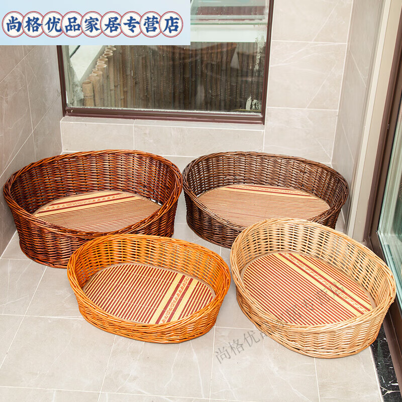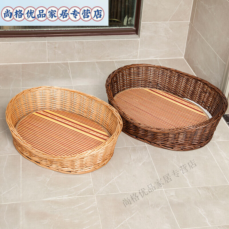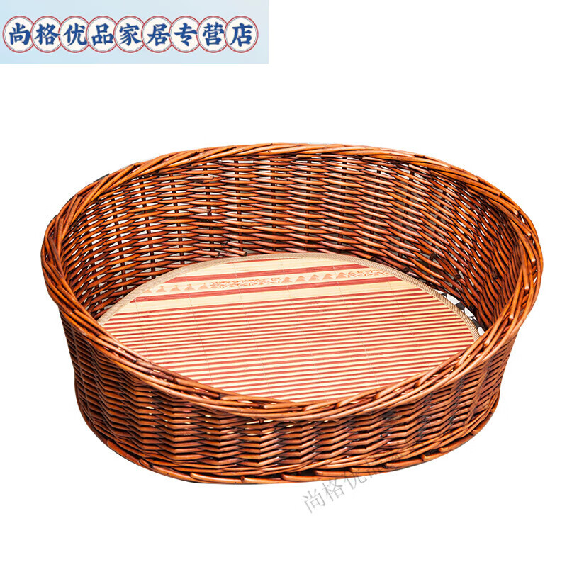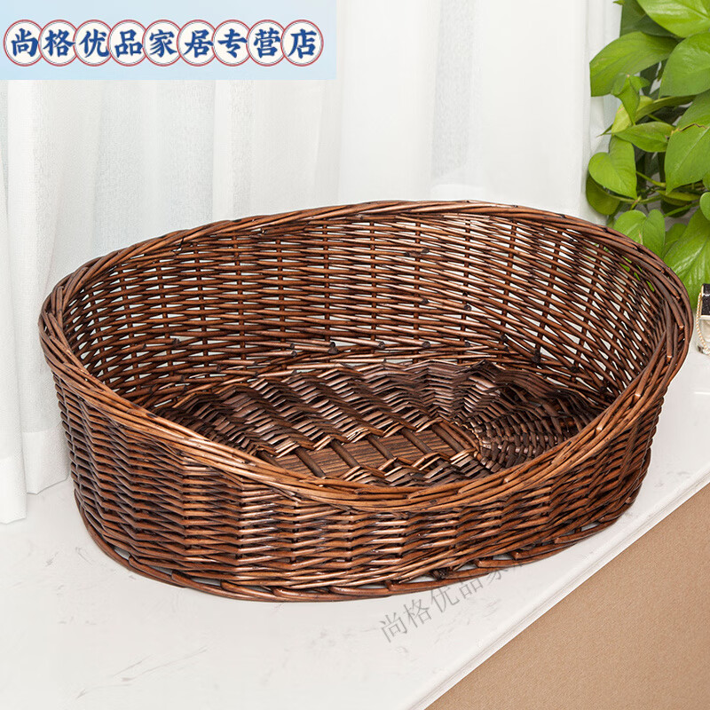 帕沐阁 狗窝夏天凉窝藤编狗窝四季通用狗房子狗床狗屋大中小型犬窝猫 咖色裸窝 五号50*38适合5斤内