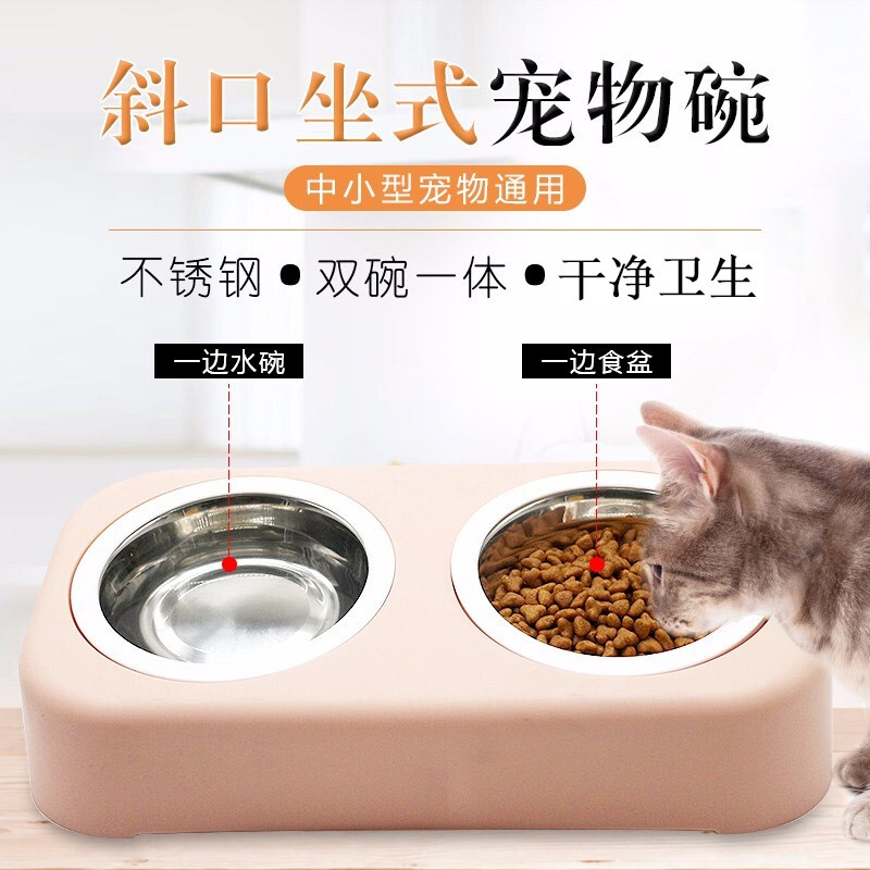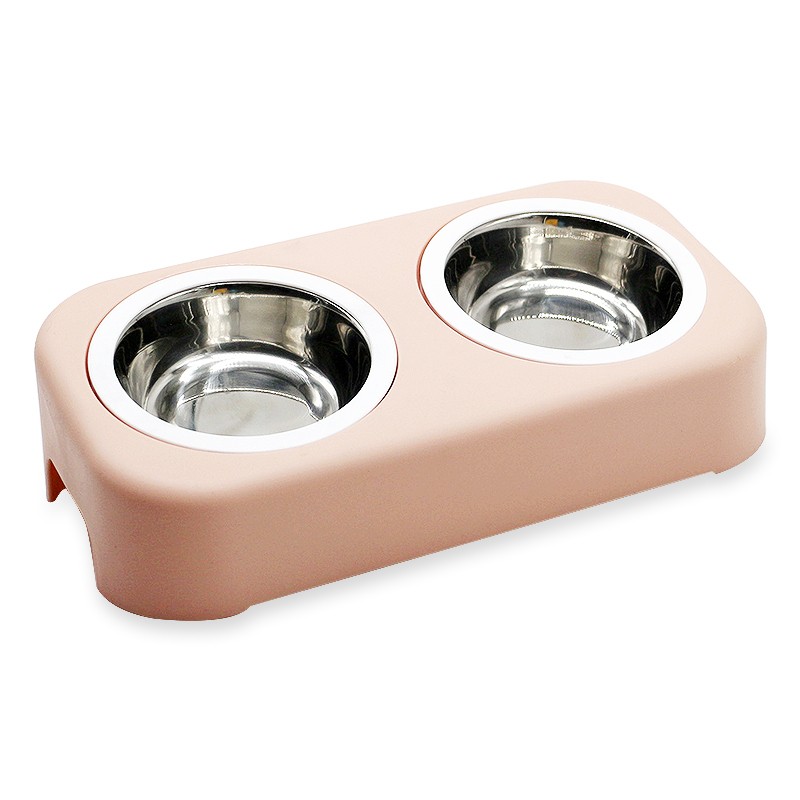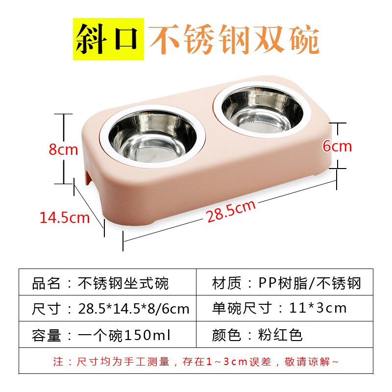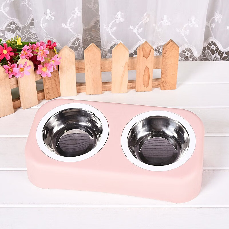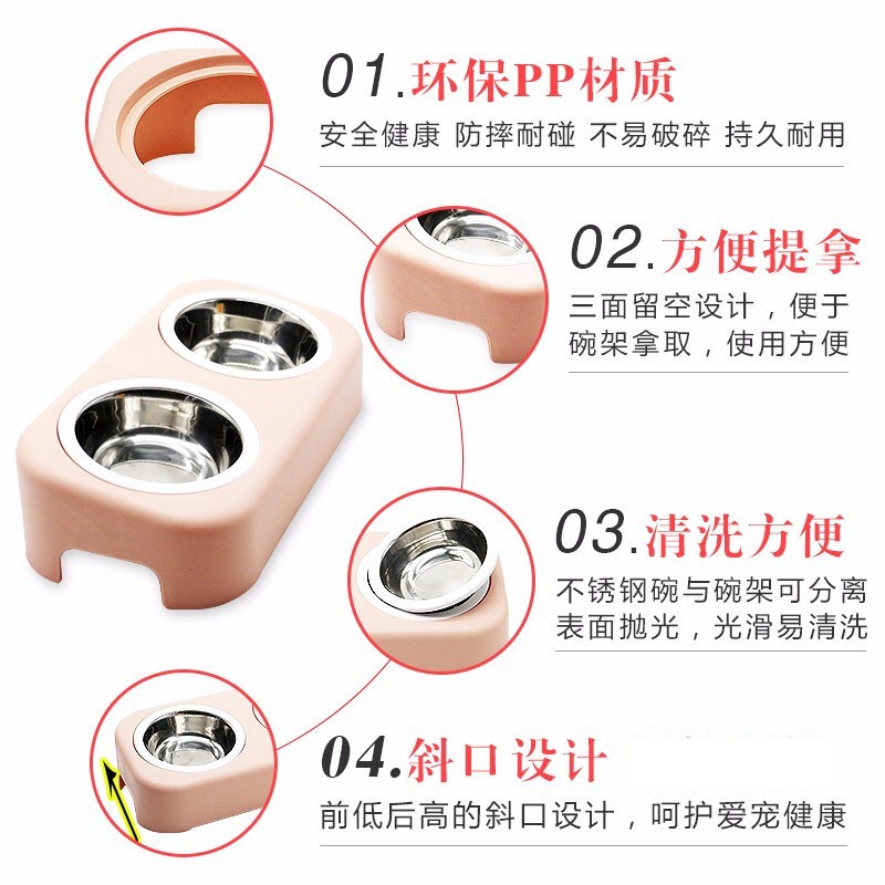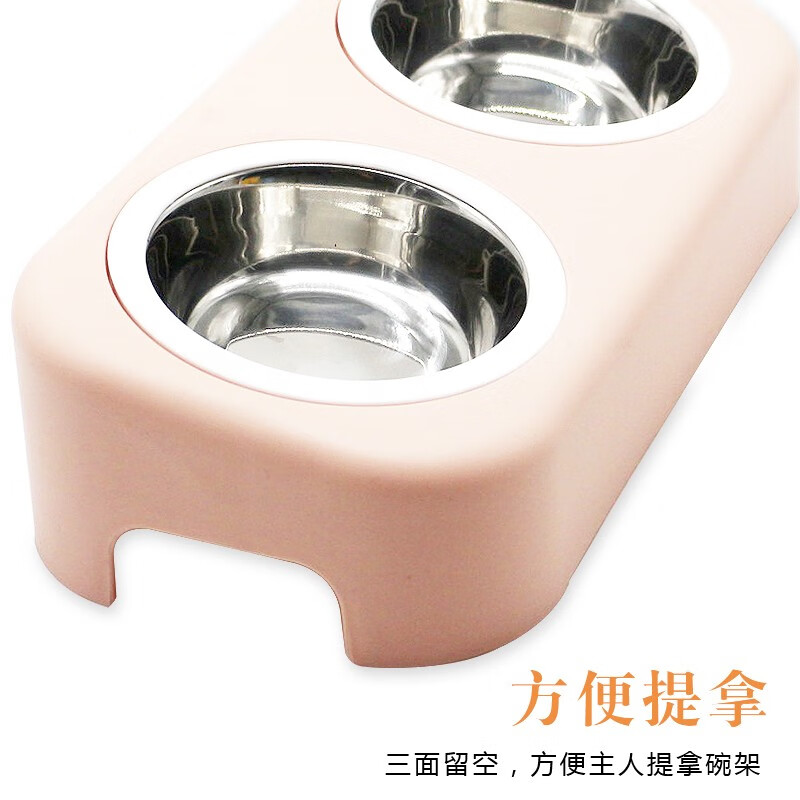 贝尼熊 狗碗狗食盆 笼子挂式猫盆狗狗饮水器狗盆猫粮盆狗粮盆狗 狗狗饮水器座式双碗粉色