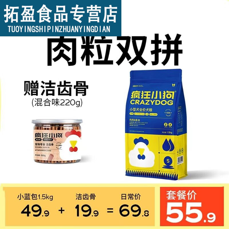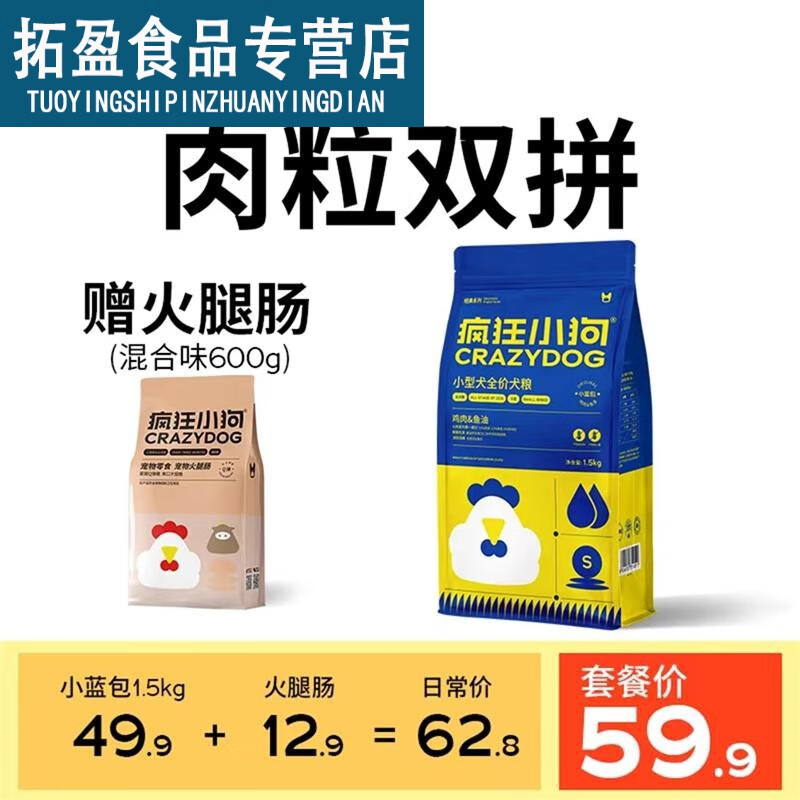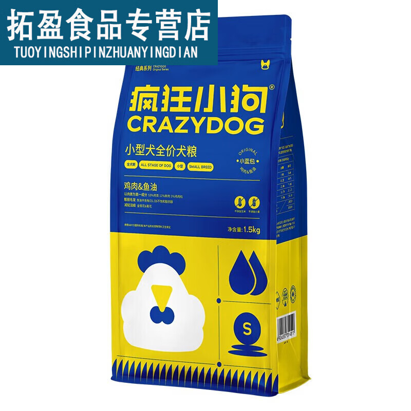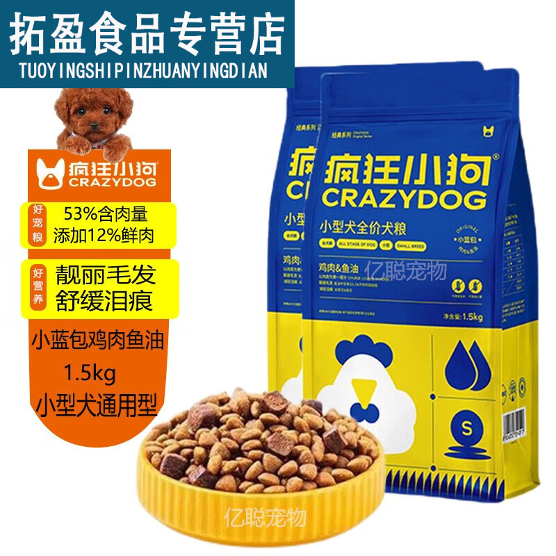 疯狂小狗狗粮小蓝包鸡肉鱼油小型犬泰迪贵宾博美比熊小型犬通用粮 升级款小蓝包鸡肉鱼油1.5kg